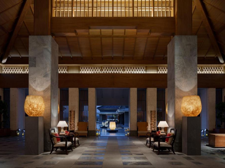 Perched atop a scenic hill in Nago City, The Ritz-Carlton, Okinawa offers 97 luxurious rooms and suites, each featuring private terraces with views of the East China Sea or the Kise Country Club's championship golf course. The resort's design harmoniously blends contemporary elegance with traditional Ryukyu elements, creating a serene retreat.